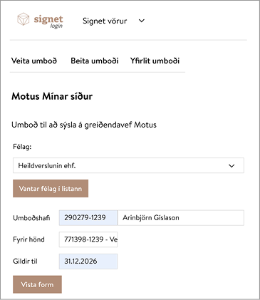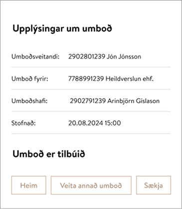 Þegar umboðið hefur verið vistað birtist staðfesting þess efnis.