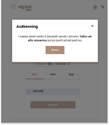Sláðu inn númerið sem birtist á símanum þínum í reitinn fyrir auðkennisnúmer á Signet vefnum.